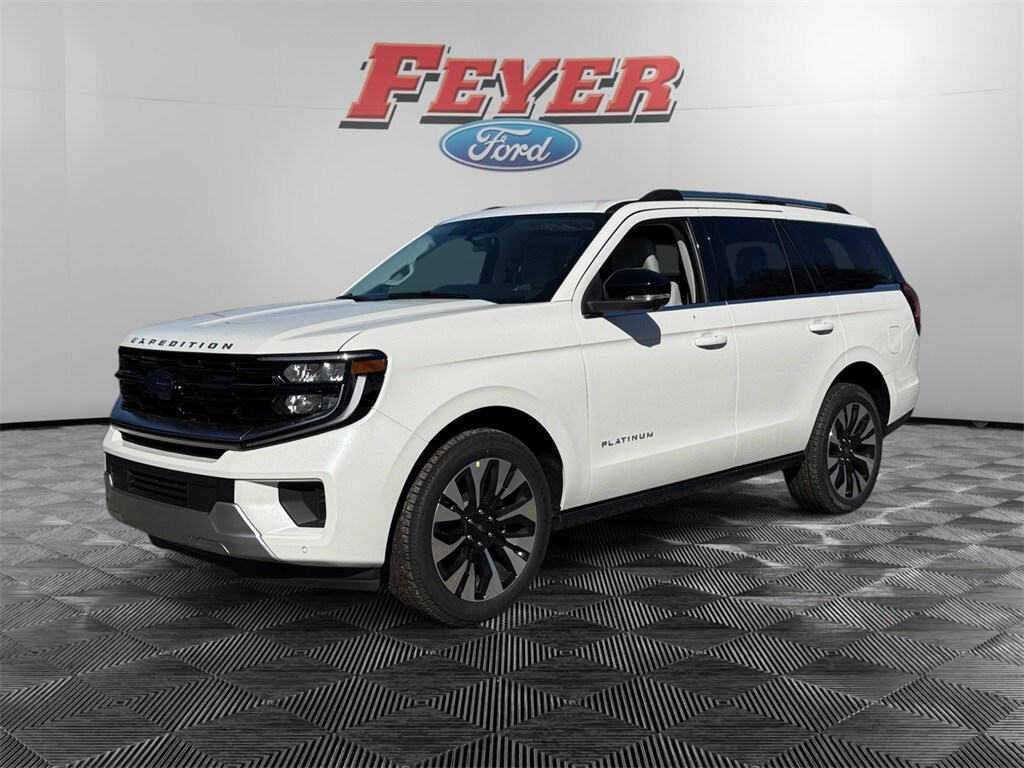 Star White Metallic Tri-Coat 2026 Ford Expedition Platinum 4WD 10-Speed Automatic EcoBoost 3.5L V6 GTDi DOHC 24V Twin Turbocharged Pre-Collision Assist with Automatic Emergency Braking w/Pedestrian Detection, Adaptive Cruise Control/Lane Centering System, BlueCruise, Bluetooth (Handsfree) Phone, Ford Digital Experience, Google Assistant, Google Maps, Google Play, Waze Navigation Integration, Apple CarPlay® and Android AutoTM Wireless Compatibility, 13.2" Color LCD Touchscreen, Alexa Built-In, SiriusXM Satellite Radio, Voice Controlled iPod/Mp3 input/USB port, Ford CoPilot 360, Terrain Management System, Heated/Cooled Front Seats, Heated Rear Seats, Keyless Entry Keypad, 911 Assist, 360-Degree Camera, Lane Keeping System, Automatic High-Beam Headlamps, FordPass Connect w/5G Modem, Wi-Fi Hotspot, 2nd Row Captain's Chairs, Wireless Charging Pad, Blind Spot Information System (BLIS), Rain-Sensing Windshield Wipers, Rear View Camera, Expedition Platinum, 4WD, 2nd Row Power-Folding Captain's Chairs, 3.73 Axle Ratio, Auto High-beam Headlights, Black Onyx Painted Power Deployable Running Boards, BlueCruise Equipped (90-Day Trial), Driver's Package, Equipment Group 600A Standard Package, Ford Connectivity Package (1-Year Included), Ford Digital Experience, Front dual zone A/C, Garage door transmitter, Heated and Ventilated Leather Front Captain's Chairs, Heated steering wheel, Memory seat, Navigation System, Power moonroof: Vista Roof, Power Tilt/Telescopic Steering Wheel with Memory, Power-Adjustable Pedals with Memory, Radio: B&O Play Unleashed, Radio: B&O Sound System by Bang and Olufsen, Rain sensing wipers, Rear air conditioning, SecuriCode Keyless Entry Illuminated Keypad, SiriusXM with 360L, Wheels: 22" x 9.0" Ebony Bright Machined Face Aluminum.
