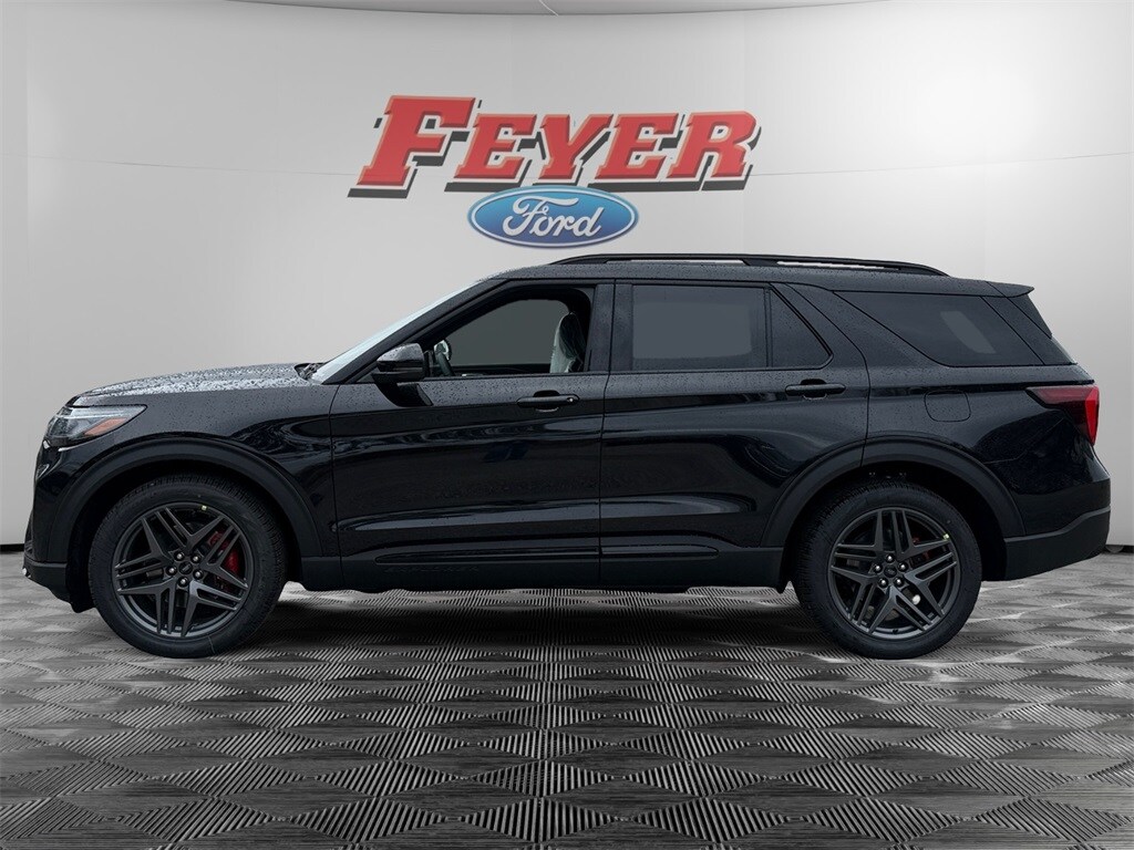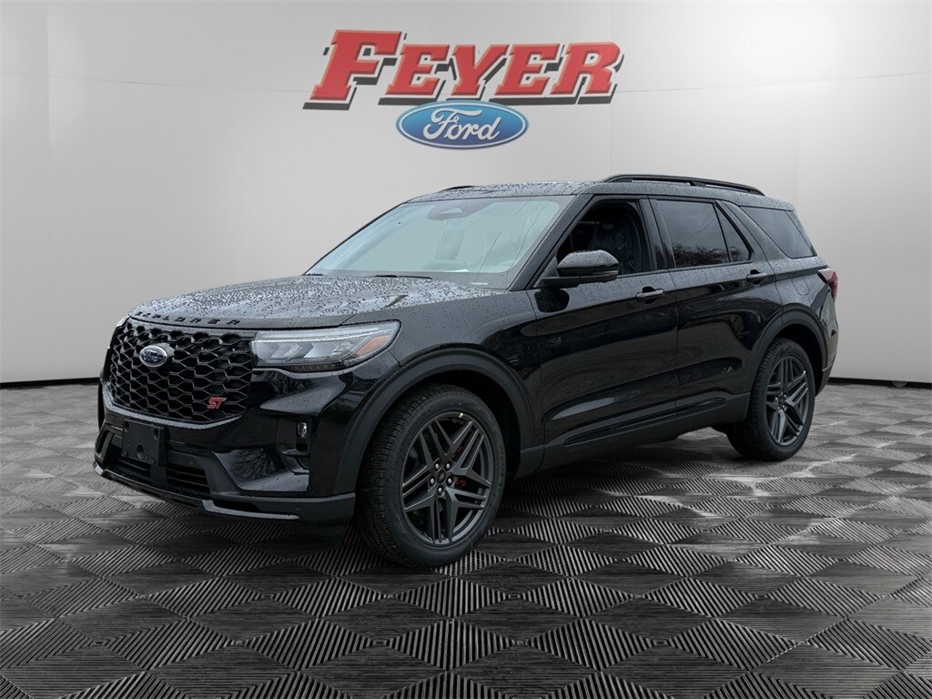 COMING SOON! Agate Black Metallic 2026 Ford Explorer ST 4WD 10-Speed Automatic 3.0L EcoBoost V6 Pre-Collision Assist with Automatic Emergency Braking w/Pedestrian Detection, Adaptive Cruise Control/Lane Centering System, BlueCruise, Bluetooth (Handsfree) Phone, Ford Digital Experience, Google Assistant, Google Maps, Google Play, Waze Navigation Integration, Apple CarPlay® and Android AutoTM Wireless Compatibility, 13.2" Color LCD Touchscreen, Alexa Built-In, SiriusXM Satellite Radio, Voice Controlled iPod/Mp3 input/USB port, Ford CoPilot 360, Heated/Cooled Front Seats, Keyless Entry Keypad, 911 Assist, 360-Degree Camera, Lane Keeping System, Automatic High-Beam Headlamps, FordPass Connect w/5G Modem, Wi-Fi Hotspot, 2nd Row Captain's Chairs, Wireless Charging Pad, Blind Spot Information System (BLIS), Rain-Sensing Windshield Wipers, Rear View Camera, Explorer ST, 4WD, Active Cruise Control, Auto High-beam Headlights, Equipment Group 400A Standard Package, Exterior Parking Camera Rear, Front dual zone A/C, Heated steering wheel, Knee airbag, Multicontour Seats with Front Active Motion, Navigation System, Panoramic Fixed Glass Roof with Power Shade, Power Liftgate, Radio: B&O Sound System by Bang & Olufsen, Rear air conditioning, Remote Control Front Windows, Steering wheel mounted audio controls, Sun and Sound Package, Wheels: 21" Magnetite-Painted Aluminum.